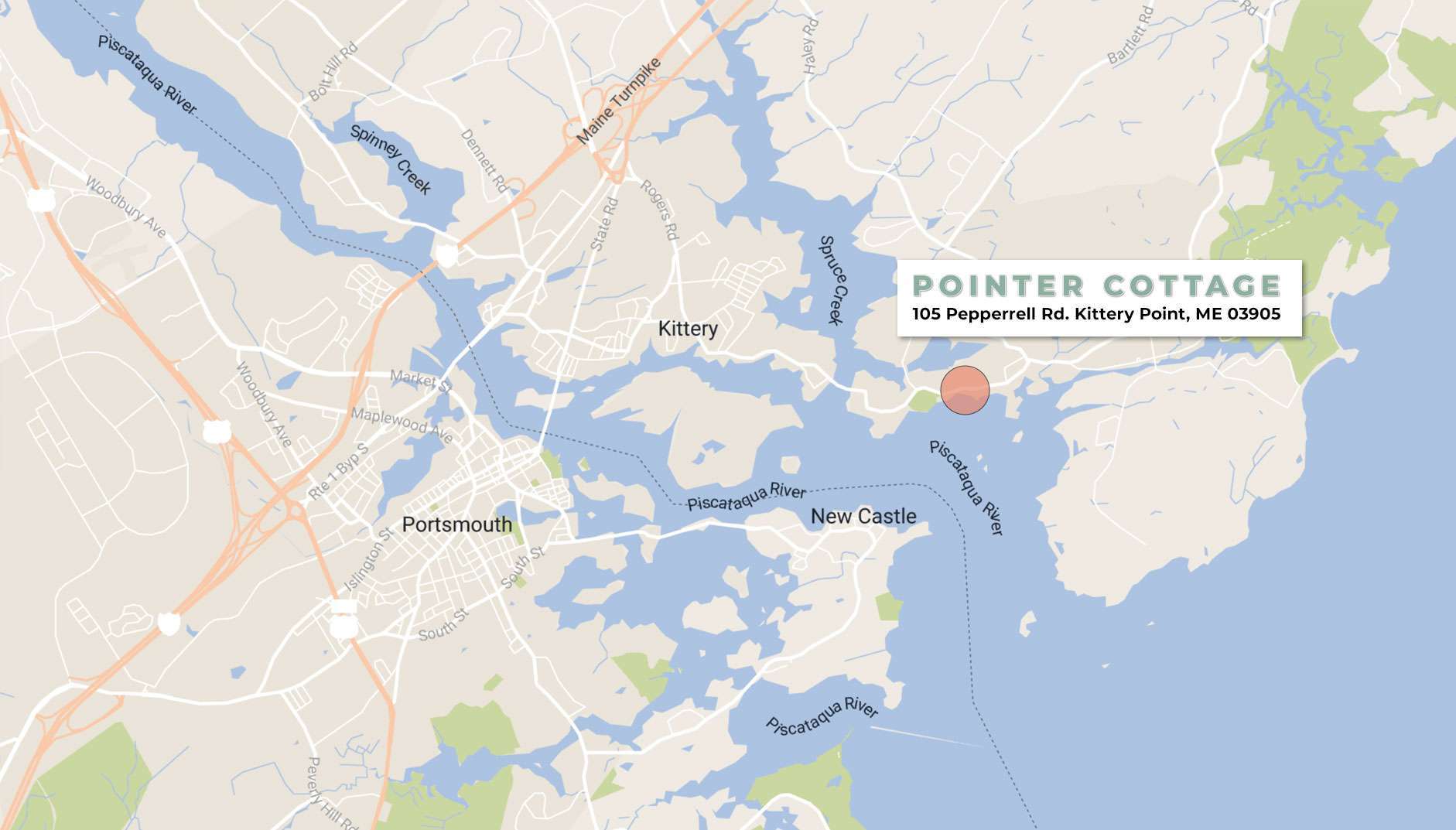 Pepperrell Road, Kittery Point, Maine, just down the road from the 1828 Bistro and town docks. Any questions?